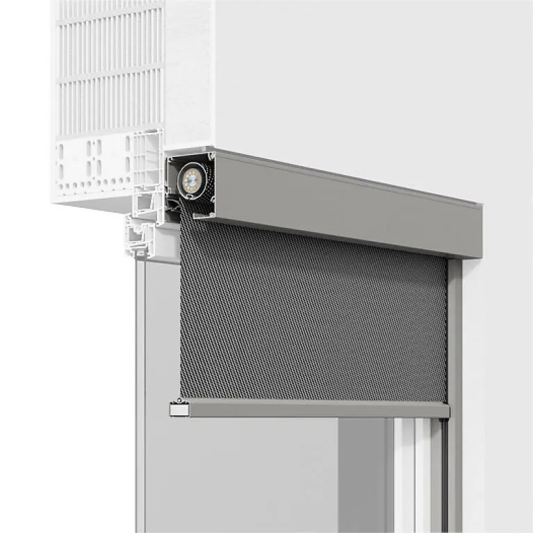 Das Vorbausystem aus Aluminium mit runder oder eckiger Kastenform. Als sichtbarer Kasten zur Montage in die Fensterlaibung, auf das Fenster oder auf die Wand. Oder vollständig in die Fassade integriert.Wird durch den Fallstab des Bauelements – den unteren Abschluss des Rollos – gezogen und auf Spannung gehalten. Zwischen Gewebe und Führungsschiene bleibt ein ca. zehn Millimeter breiter Spalt. rollSCREEN.2 kann ebenfalls bis zu 70 % der Sonneneinstrahlung reduzieren. Das schafft an heißen Tagen ein angenehmes Raumklima und verhindert tagsüber neugierige Blicke von außen. Wobei immer noch genügend Tageslicht einfällt, um eine besonders angenehme Atmosphäre zu schaffen.