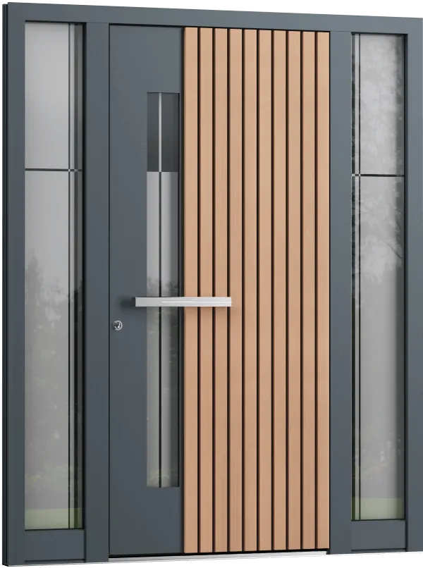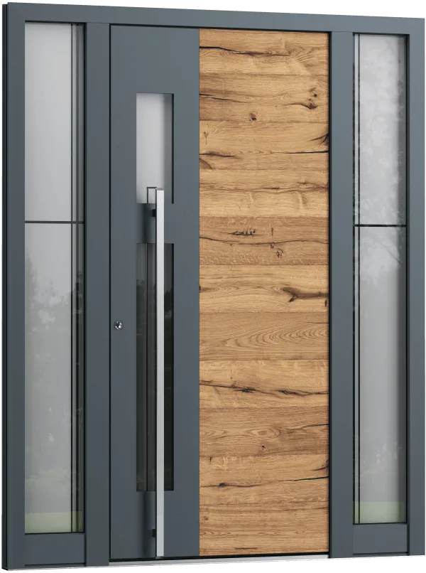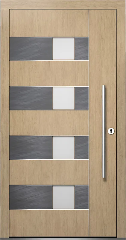 Die Haustürmodelle Linie Eleganz spielen virtuos mit geometrischen Formen. Zeitlose Architektur vereint mit Ihrer individuellen Note. Setzen Sie Akzente.